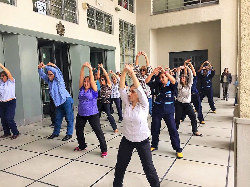 Es una actividad física que consiste en ejercicios de movilidad articular, activación, estiramientos, masajes, ejercicios compensatorios, y también actividades de cáracter mas lúdico-recreativo. El fin es brindar a todos los empleados una pausa activa, es decir un espacio para su cuerpo y su salud, pero también un espacio de motivación y diversión.